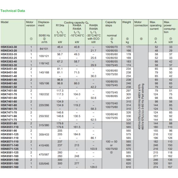 HSN8591-180 180HP R134A Screw Refrigeration Low Temperature Semi Hermetic Compressor 400~460V 50Hz/60Hz Descrition